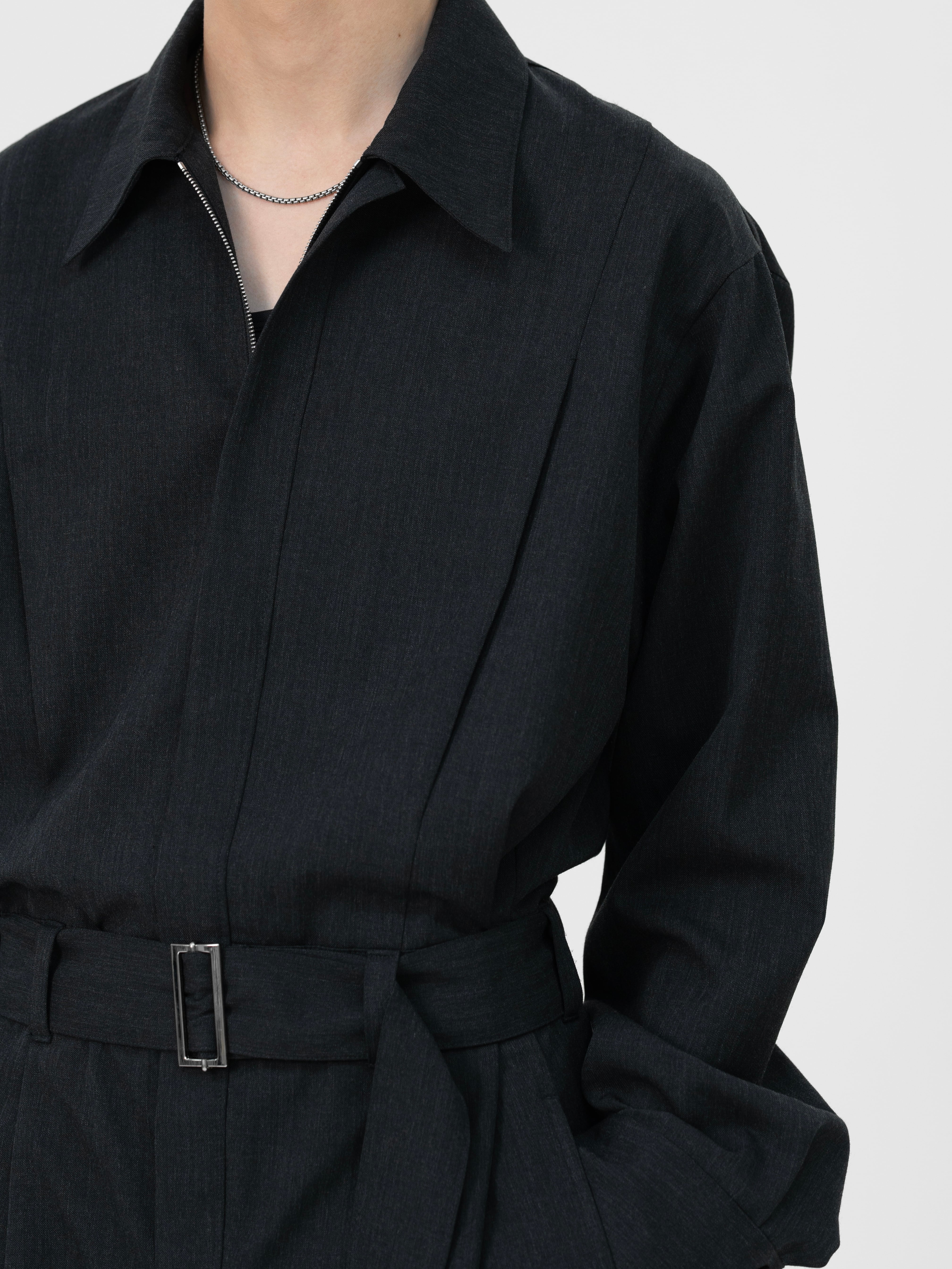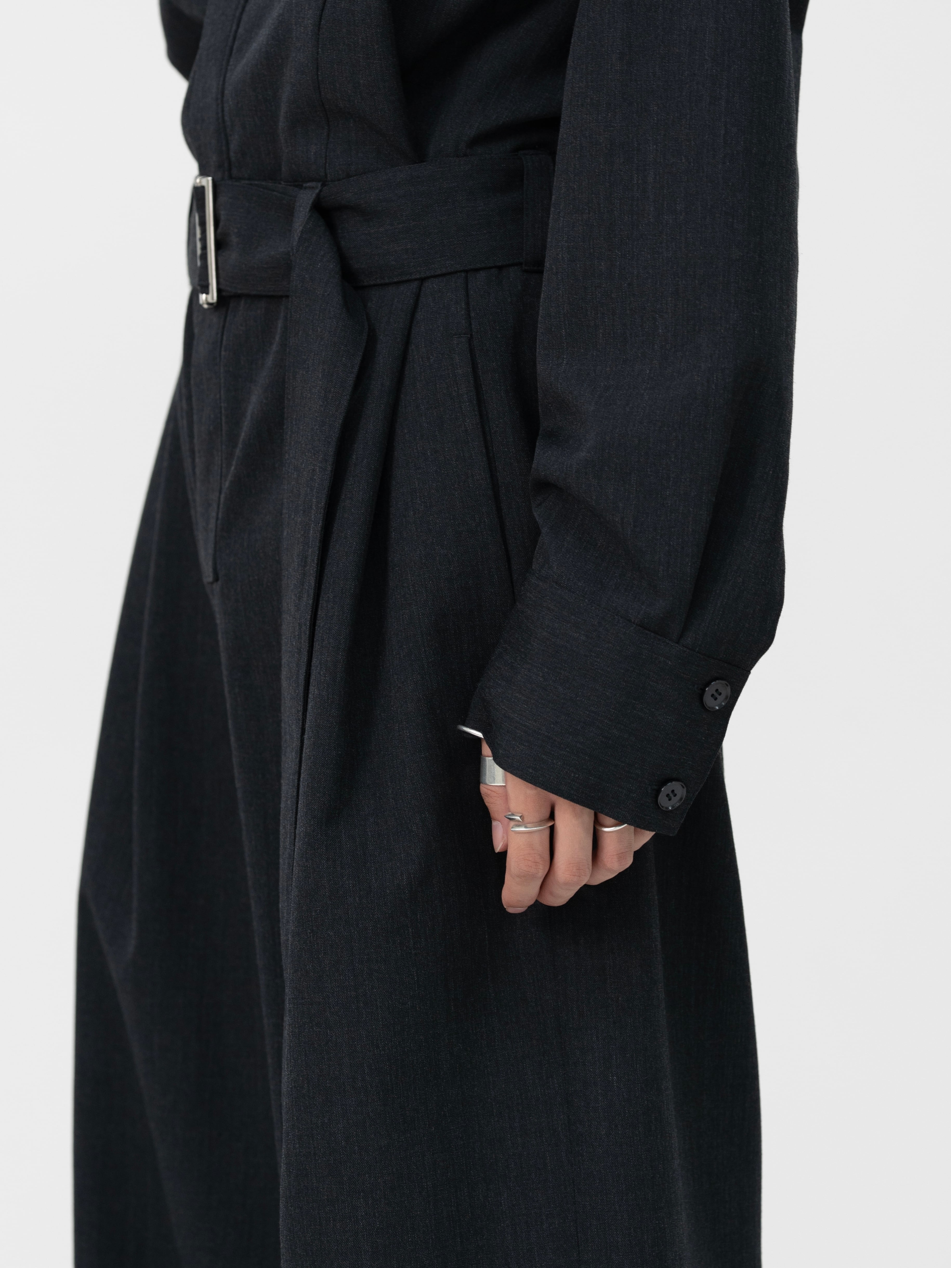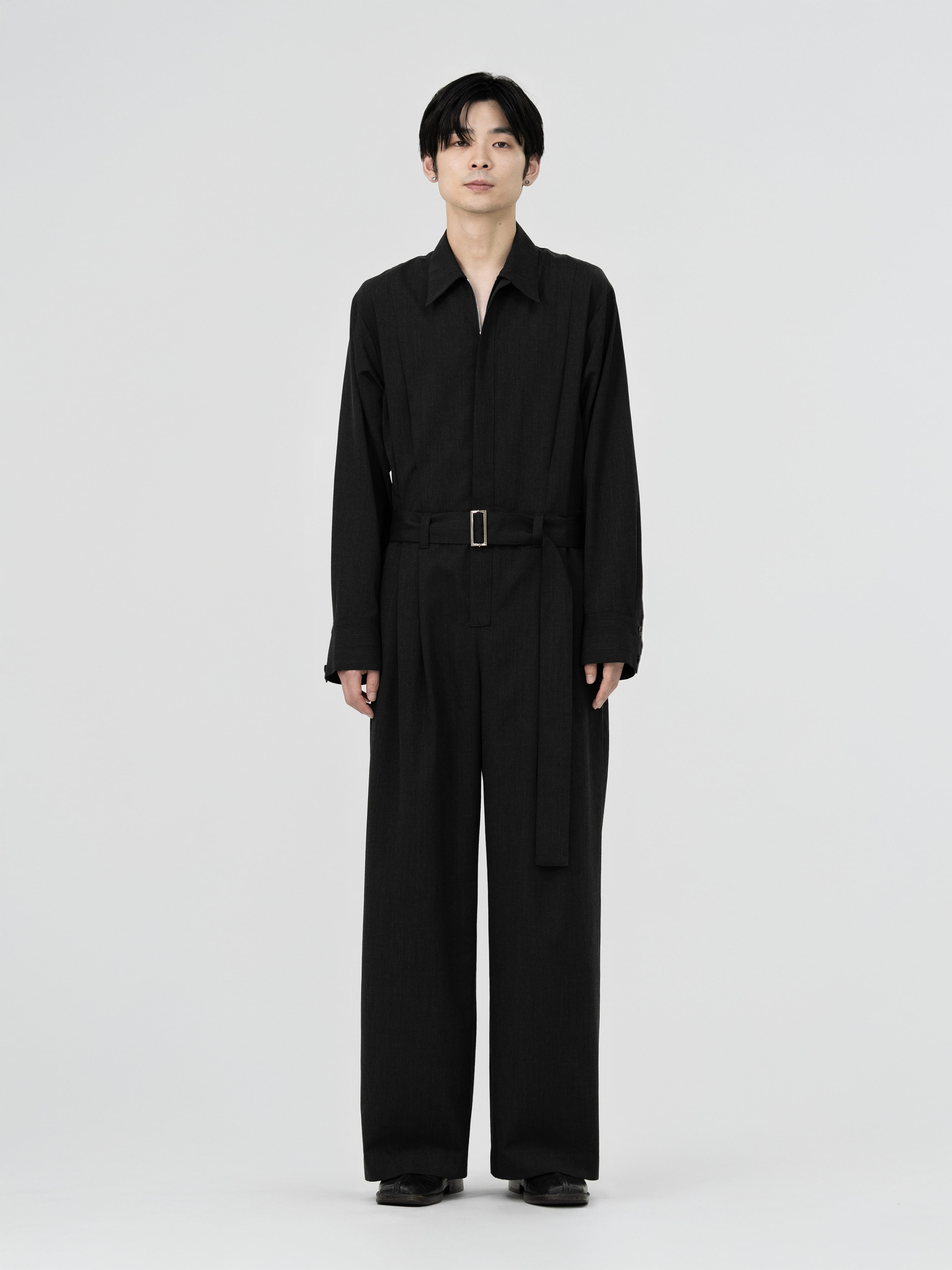 BELTED ZIP UP JUMPSUIT【CHARCOAL】
