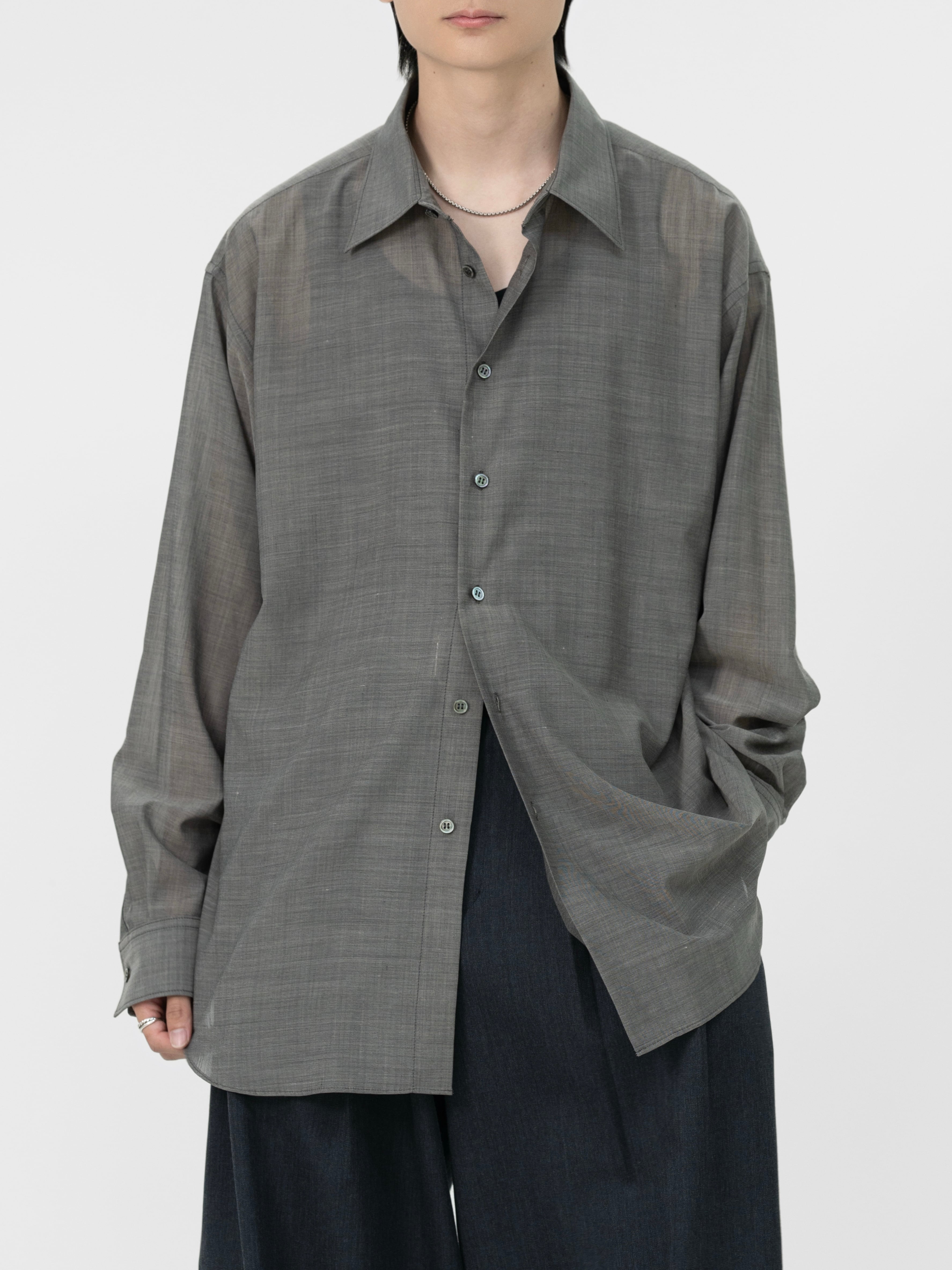 FINE WOOL CHAMBRAY SHIRT【GRAY】